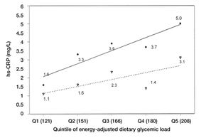 Relation between a diet with a high glycemic load and plasma concentrations of high-sensitivity C-reactive protein in middle-aged women